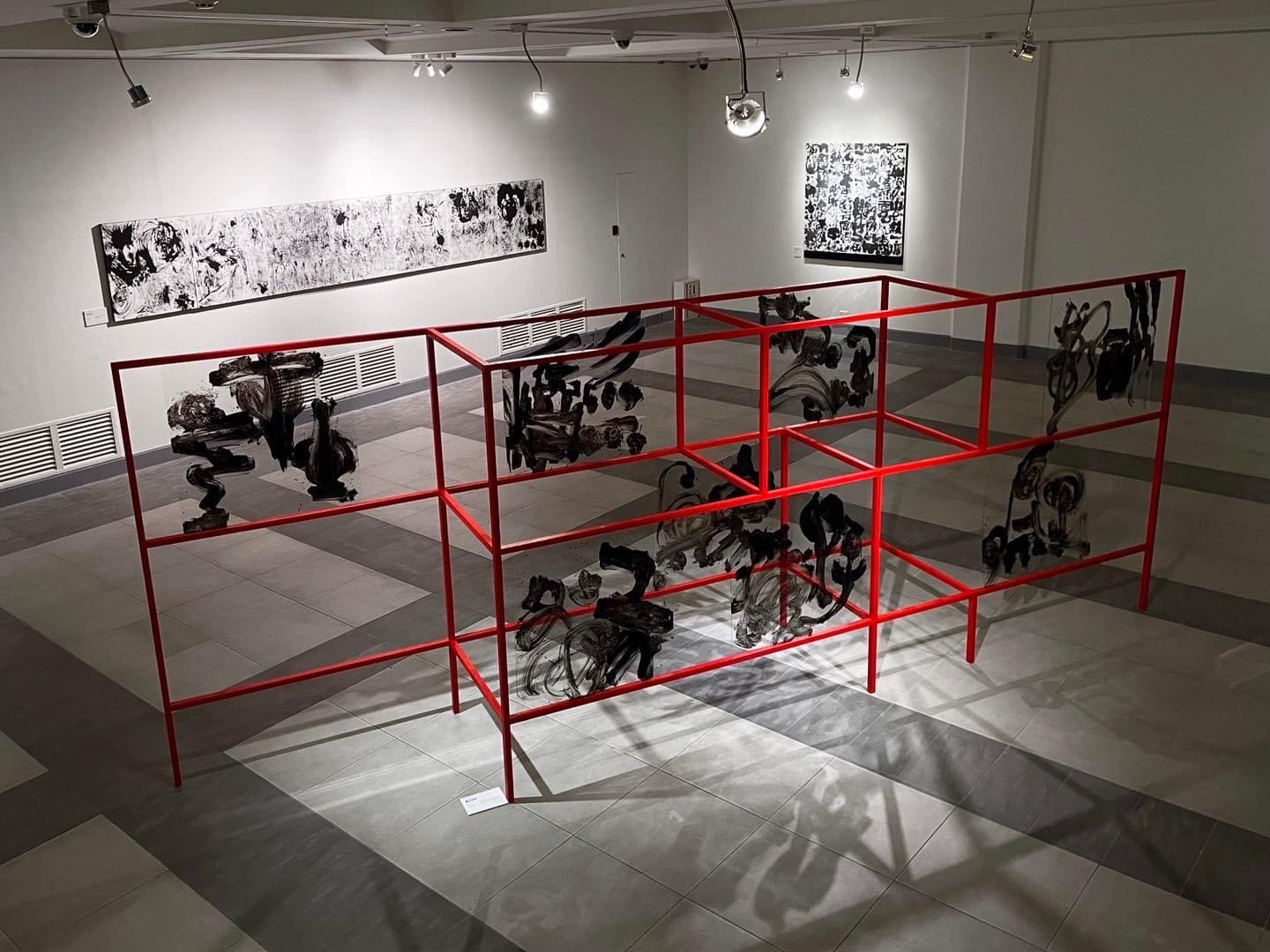 造型化、視覺化是當代書藝創作顯學,觀展情境、空間配搭則營造美感禪意,其間,裝裱的巧思透過凹凸立體光影疊層,烘托一種幽邃沉澱的氛圍,並且,在動線引導的幻惑下,進入謐然的偶落,宣陳那小中現大、微奧通玄的藝術與哲思。